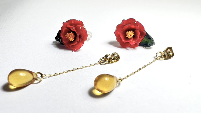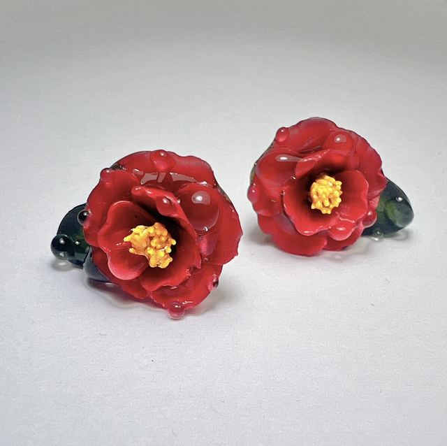 Boucles d’oreilles : Tsubaki (Camélia du Japon)